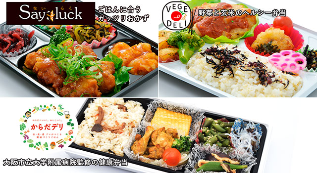 「飽きさせない」お弁当!ガッツリ志向の方には「せいらくのお弁当」、ヘルシー志向の方には「野菜と玄米のヘルシー弁当 VegeDeli」、健康が気になる方には「大阪市立大学附属病院監修の1:1:1栄養バランス弁当」を!